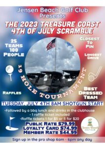 4th of July – Jensen Beach GC is excited to once again host this years outing. Be a part of one of the summers biggest tournaments. Sign up today!
